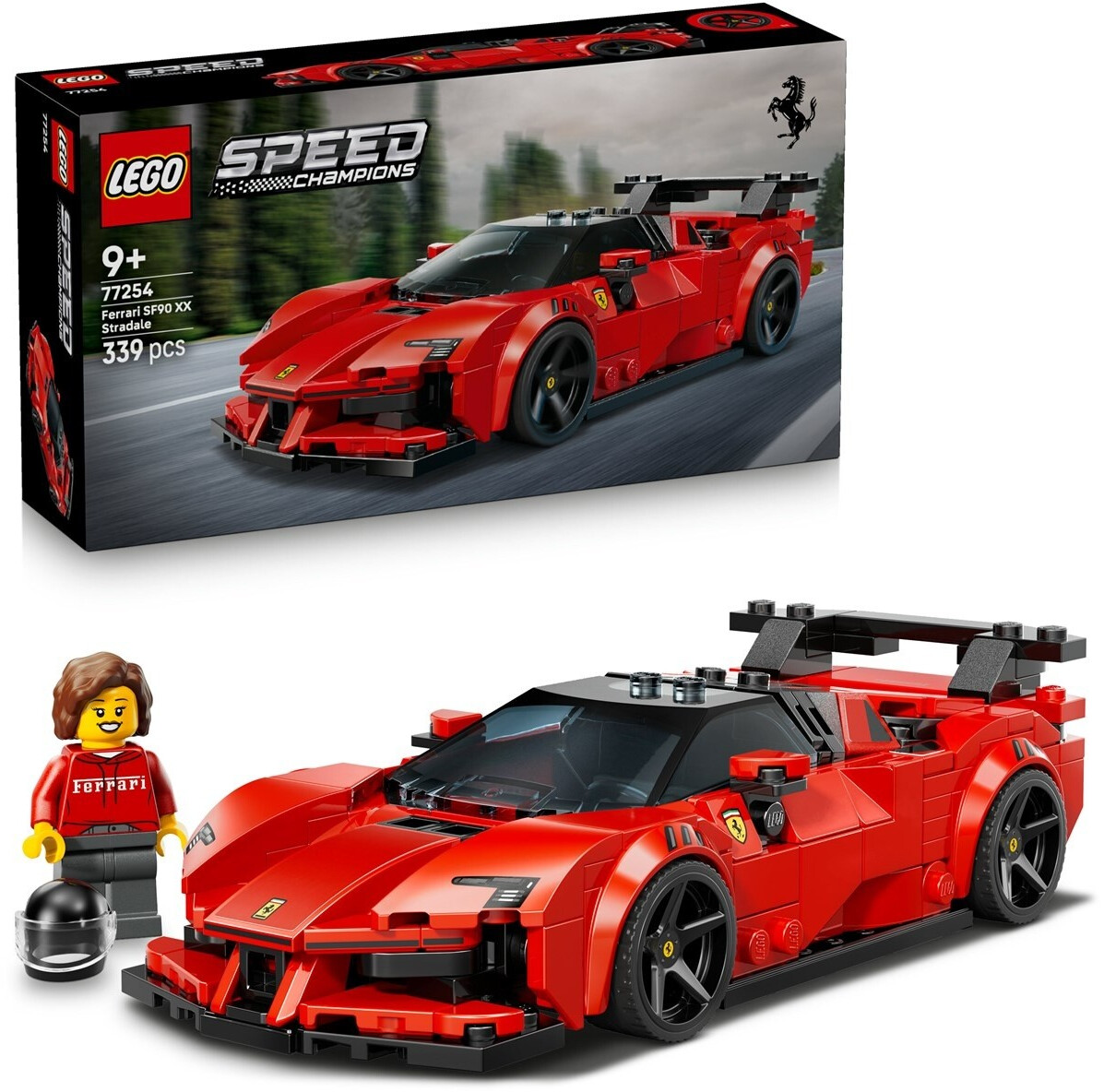 Les garçons et les filles dès 9 ans peuvent construire et exposer cette élégante Voiture de course Ferrari SF90 XX Stradale LEGO® Speed Champions (77254) et imaginer des jeux haletants. Cette maquette Ferrari reprend de nombreux détails de conception de la version réelle, la Ferrari la plus puissante jamais homologuée pour la route. Le modèle intègre un habitacle avec cabine avancée, un aileron arrière, des sorties d’échappement hautes et des jantes ornées de l’écusson Ferrari. Le kit inclut également une minifigurine de pilote portant une combinaison et un casque Ferrari, que les enfants peuvent placer dans le cockpit monoplace pour afficher leur passion pour le constructeur automobile italien. Superbe idée de cadeau pour les enfants, les sets LEGO® Speed Champions les invitent à construire des répliques de véhicules de légende. Avec ses outils de zoom, rotation en 3D et suivi de la progression, l’appli LEGO® Builder permet de construire chaque set en toute confiance. Contient 339 pièces.
